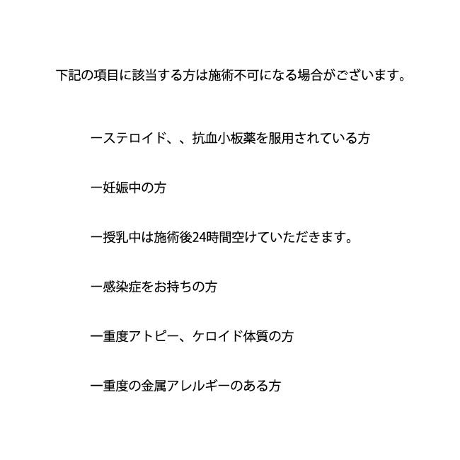 A.施術前後3週間は代謝を上げるような美容治療ピーリング、ティントは定着が悪くなるためお控え下さい。